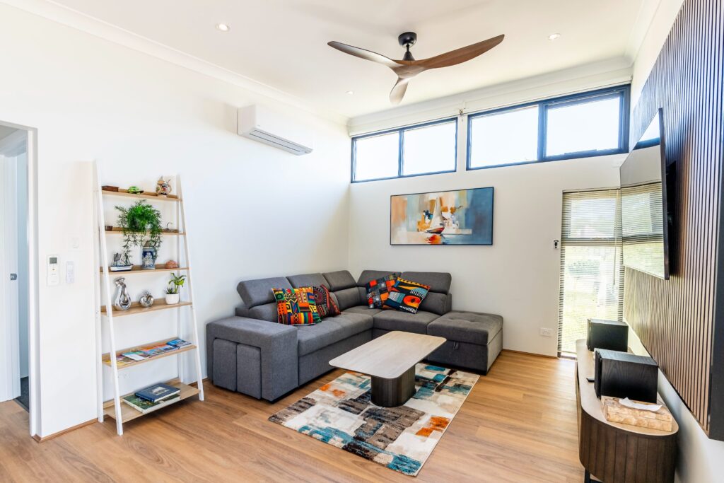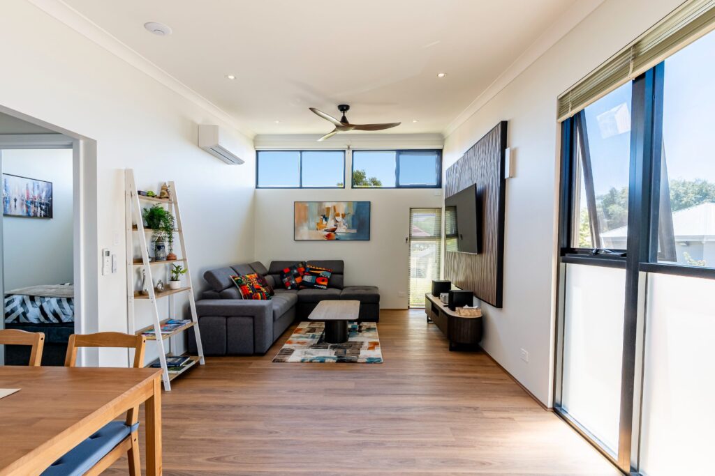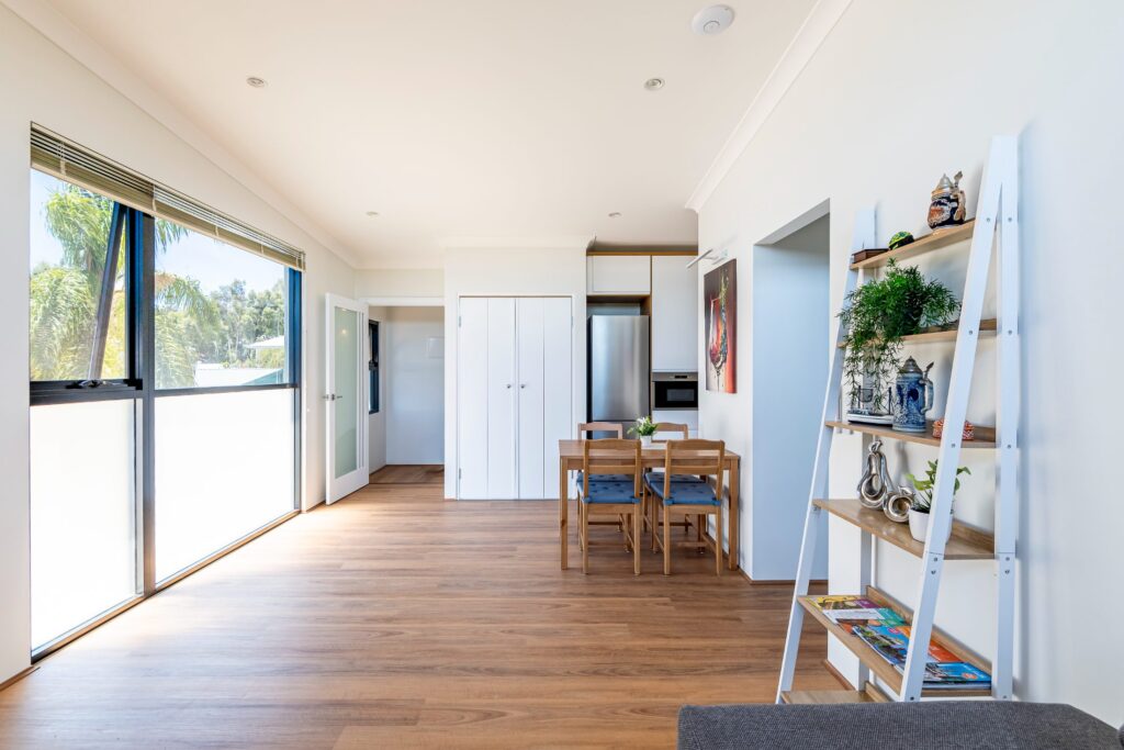 A contemporary design which maximised the existing garage structure by cantilevering on three elevations to create a wonderful 1-bedroom apartment capturing the Northern Light and enclosed entry and stairwell.